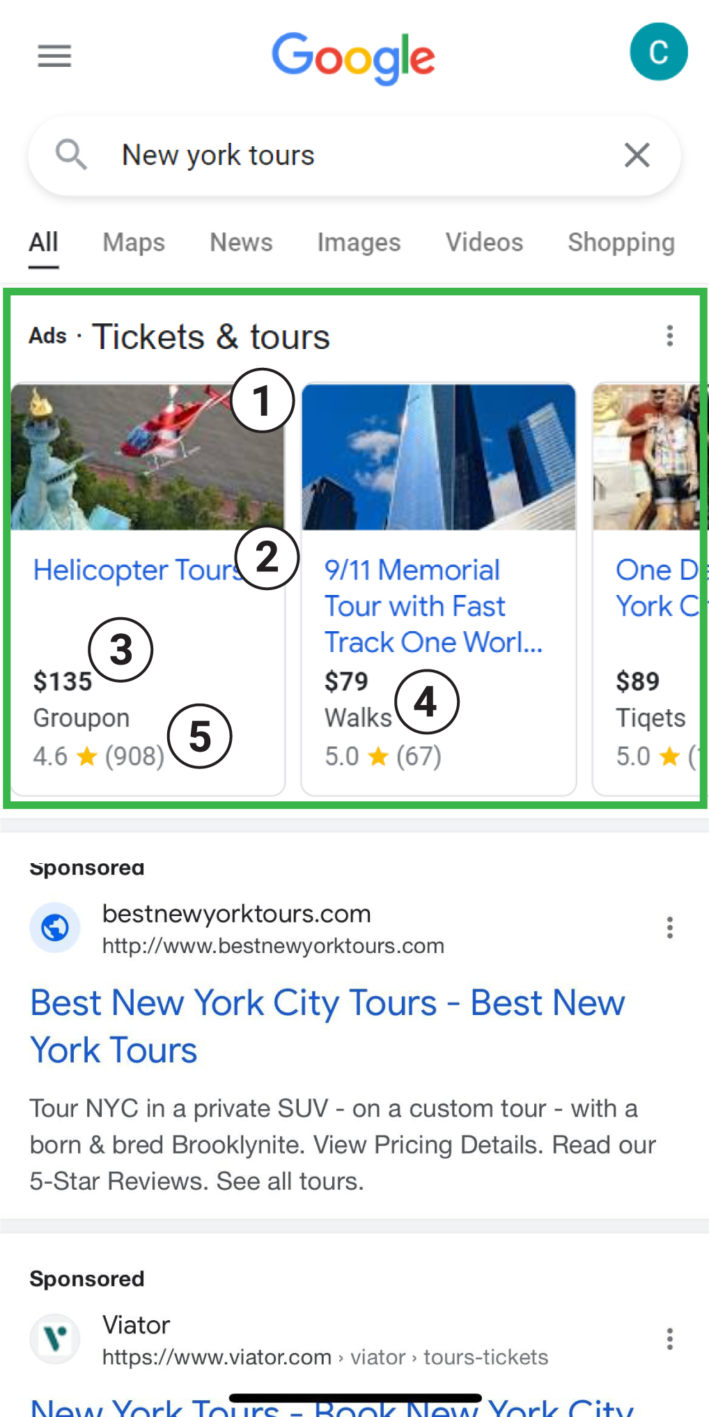 The Things to do Ads carousel and other Ad types display when a user searches for a POI or uses a common travel related search term like "Things to do in (location)" or "(location) tours". Currently the carousel is dominated by OTAs because they jumped on it quick but it is available to all operators. There is evidence to suggest that where this carousel appears, 30% of traffic is lost from down the page and with the Ads displayed below the carousel, the traffic to organic listings is reduced yet again.