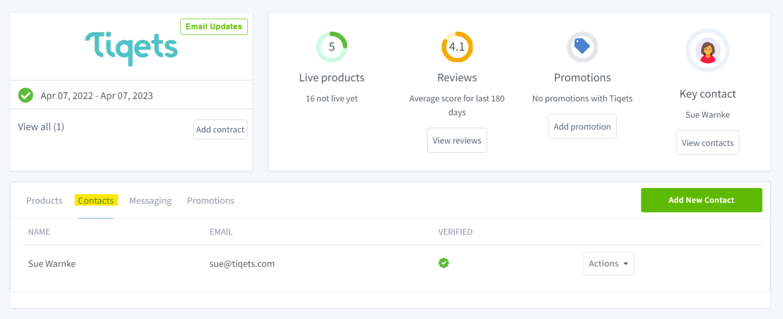Once inside the reseller hub, click on the Contacts tab. If no contacts exist yet, you will need to create one first before setting up notifications.