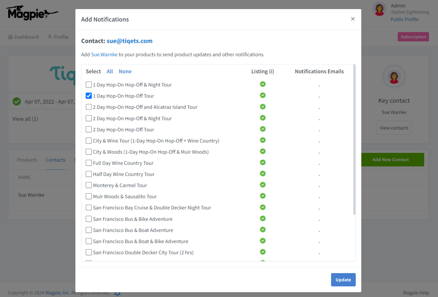 - In the modal window that appears, choose which products this contact should receive notifications about when changes are made