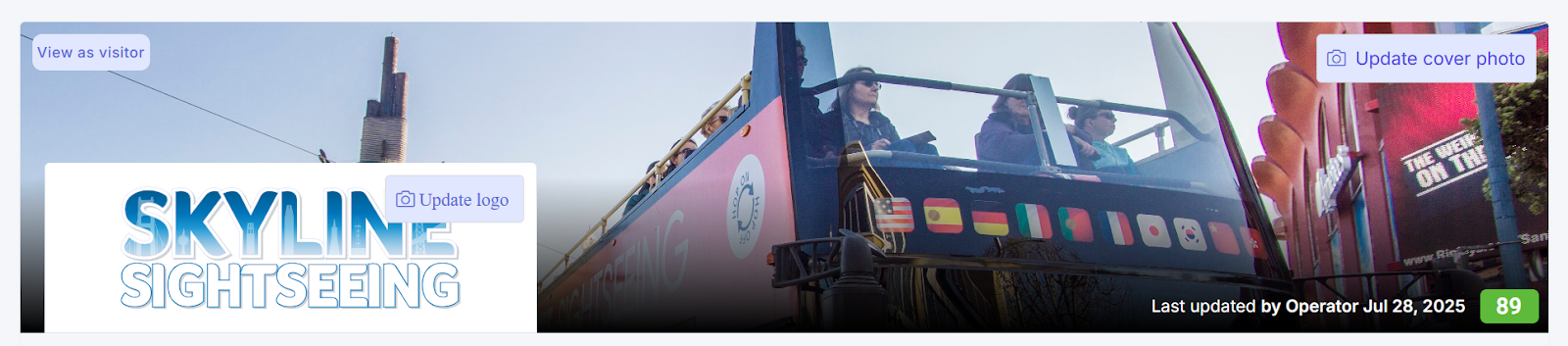 - Cover Photo and Logo - Update these by clicking the respective update buttons to upload new images