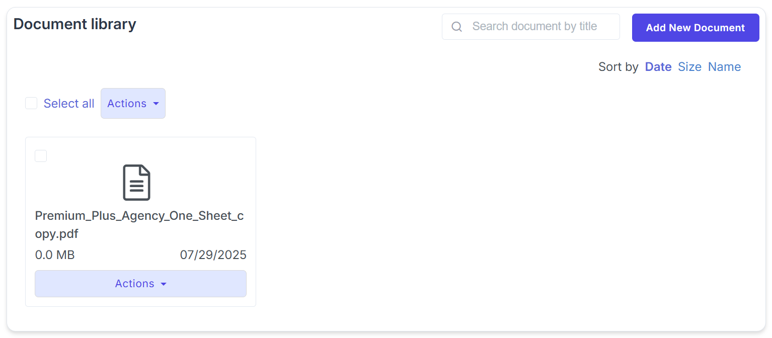 A private file storage area for contracts, brochures, insurance certificates, and other important documents. Includes search and sorting capabilities for easy retrieval.