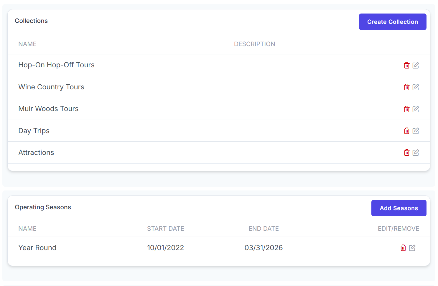 - Product description of your tours and activities