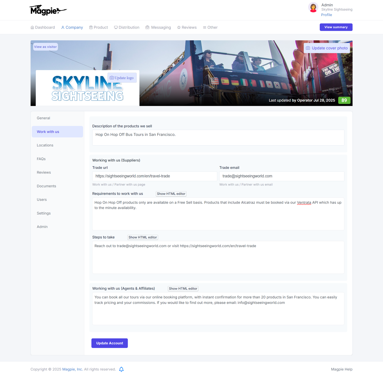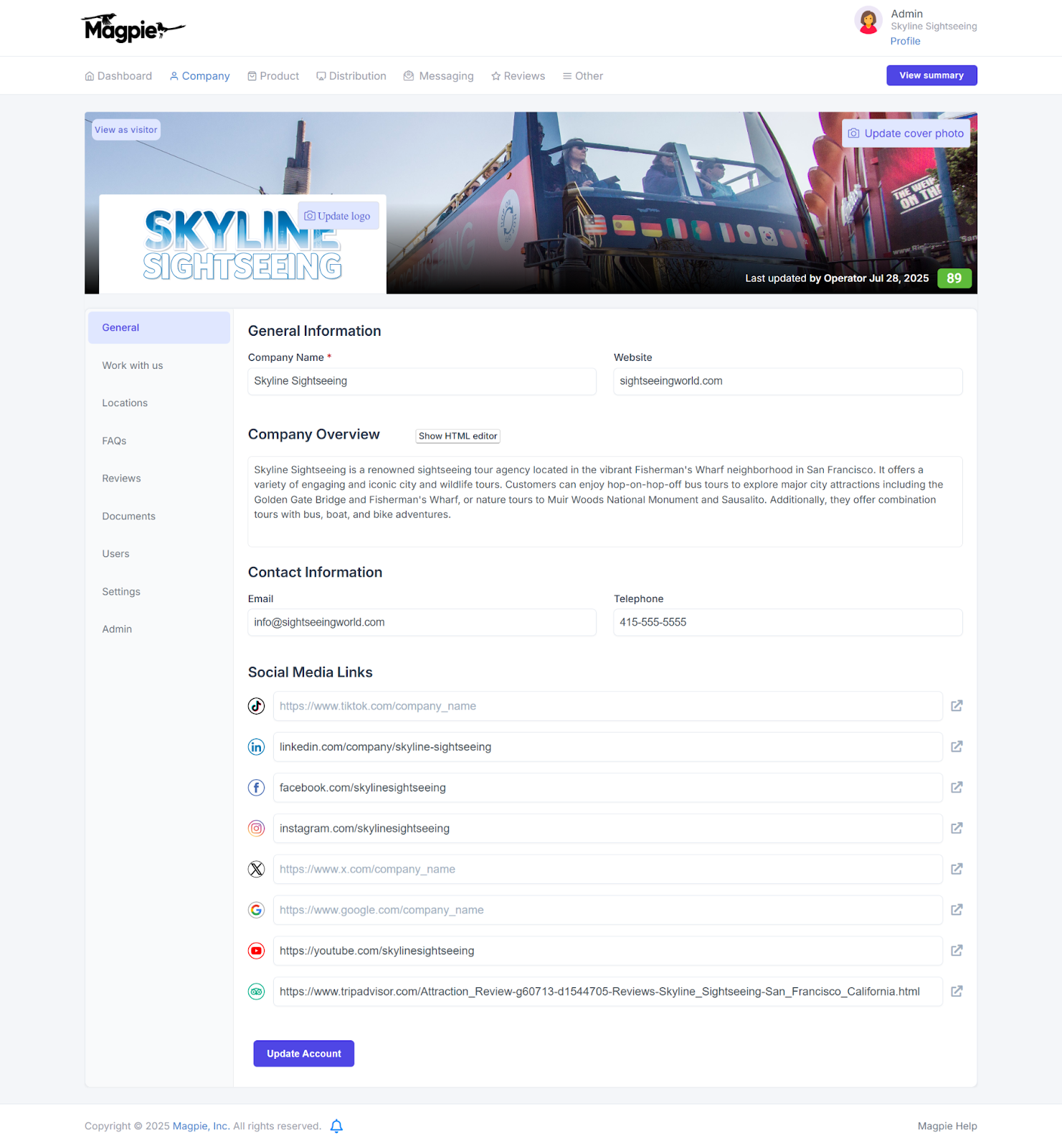 - Company overview with rich text formatting for your "About Us" description