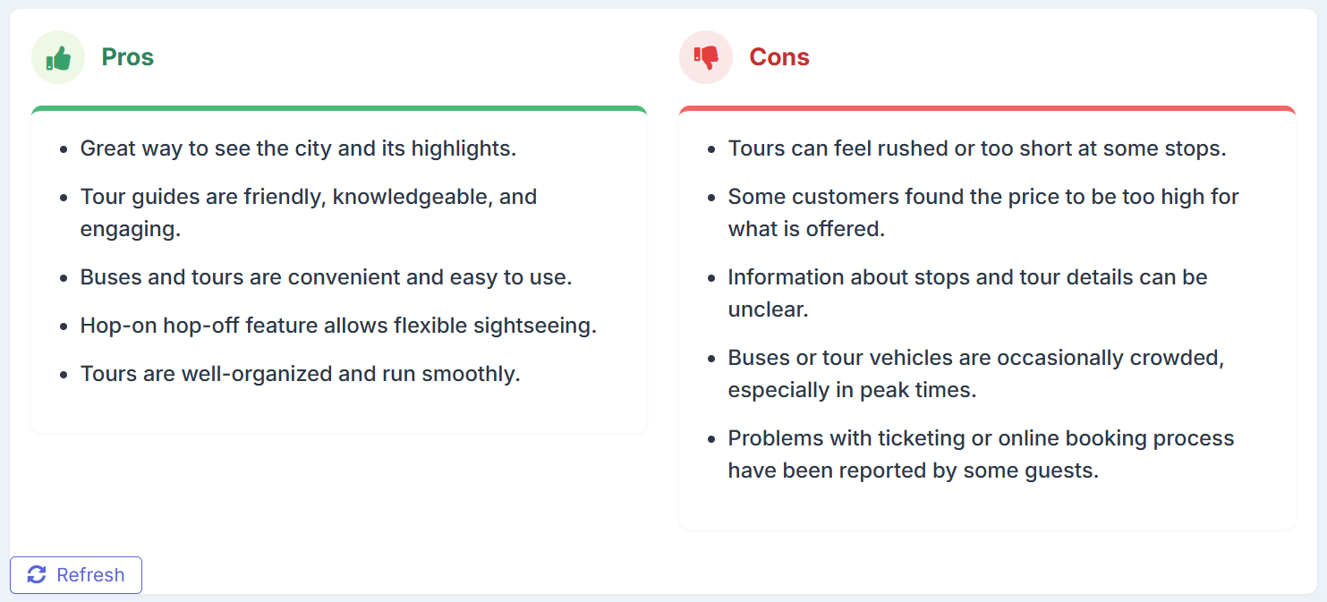 - AI-powered analysis of typical reviews and commonly mentioned phrases