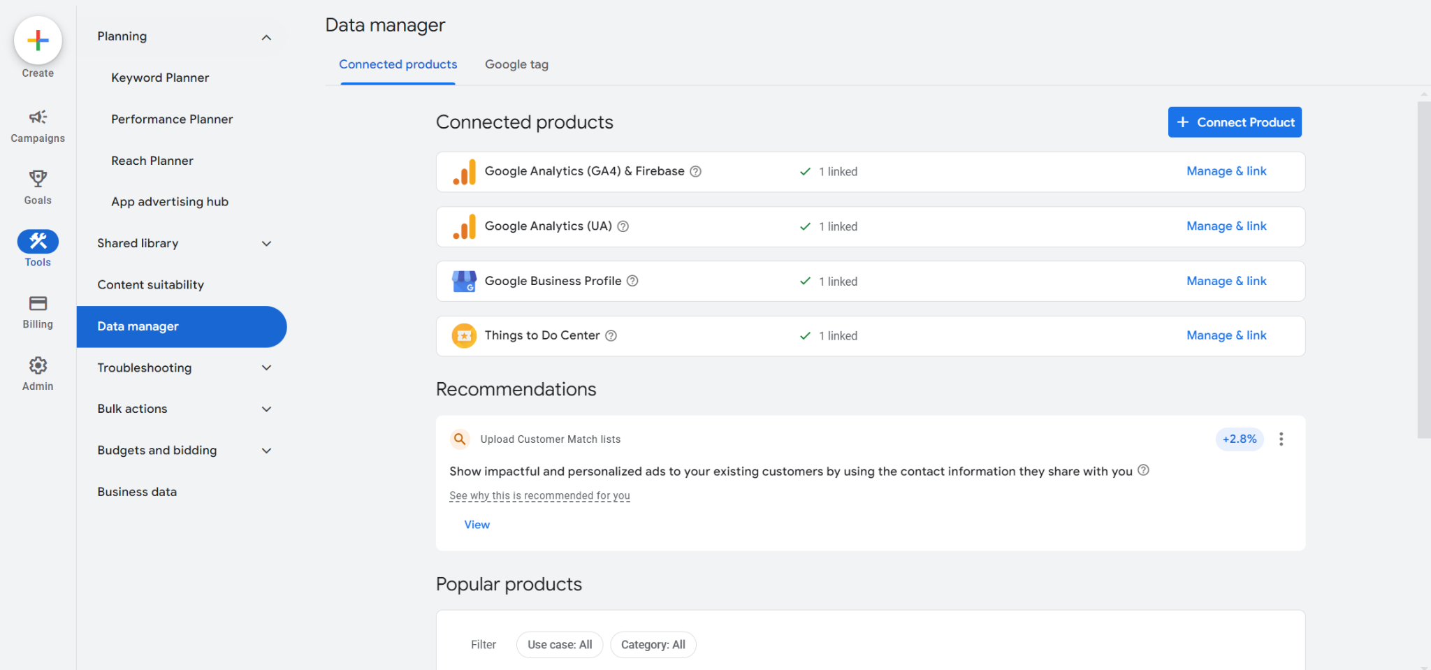 Access the Data Manager section within your Google Ads account's Tools menu.