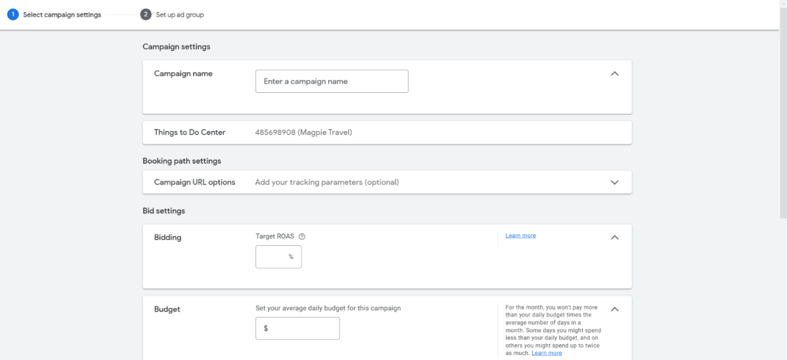 This guide helps Magpie customers who are already managing Google Things to do feeds set up Google Travel Campaigns (also known as Things to do Ads) in their Google Ads accounts. Follow each step carefully and allow time for Magpie to process your linking request before creating campaigns.