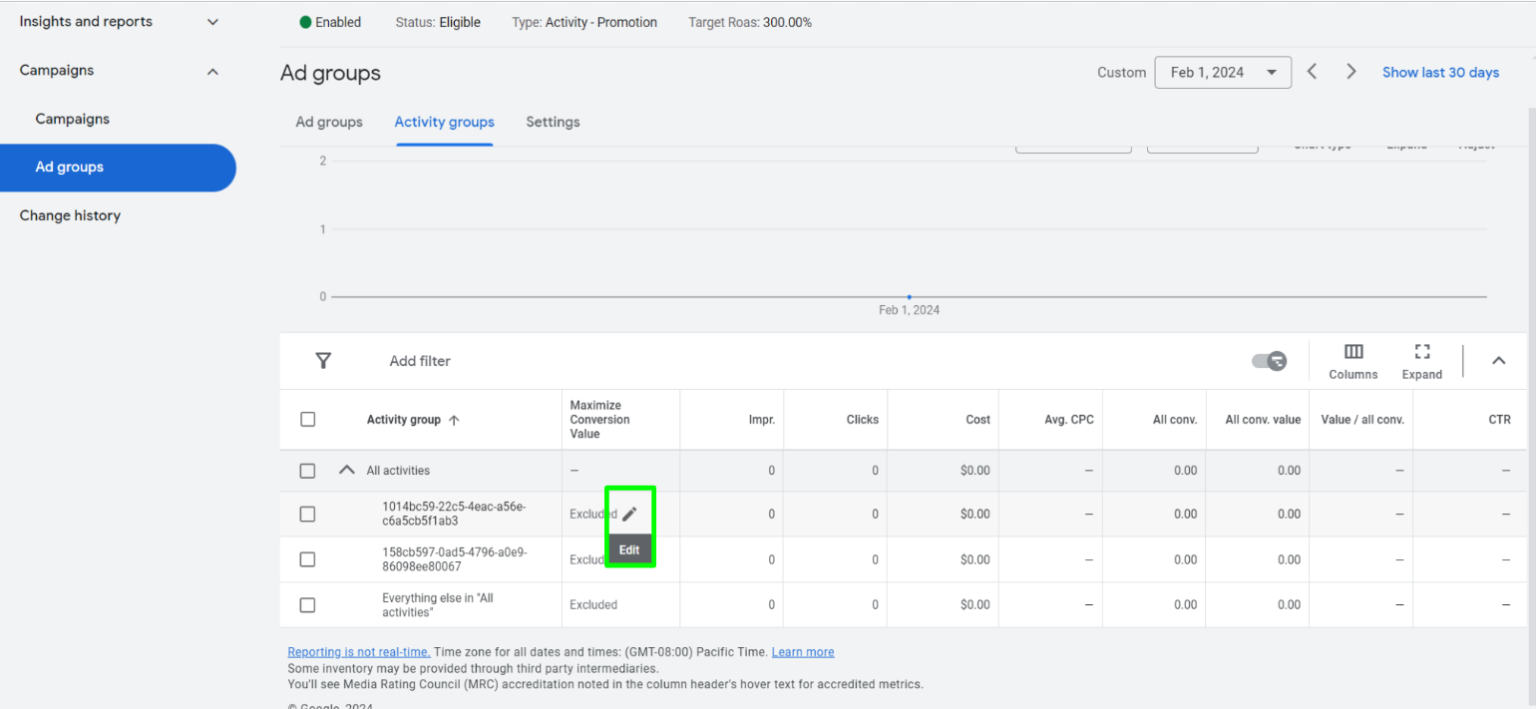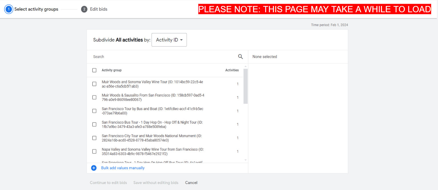 Choose Activity ID from the dropdown, select the desired activities, and click Save without editing bids.