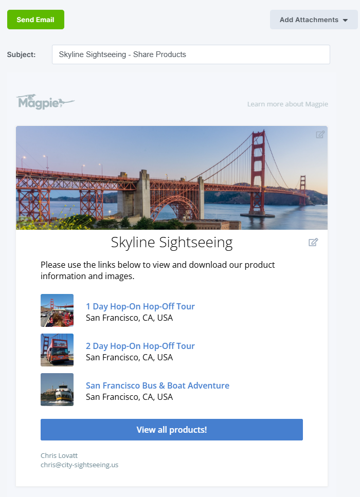 Click Send Email at the top of the page to distribute your product information to all selected recipients.